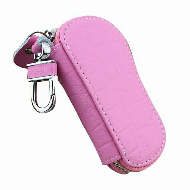 1000円ポッキリ 送料無料 クロコダイル調 型押し レザー 本革 スマート キーケース カラビナ付き 曲形 ライトピンクA00624