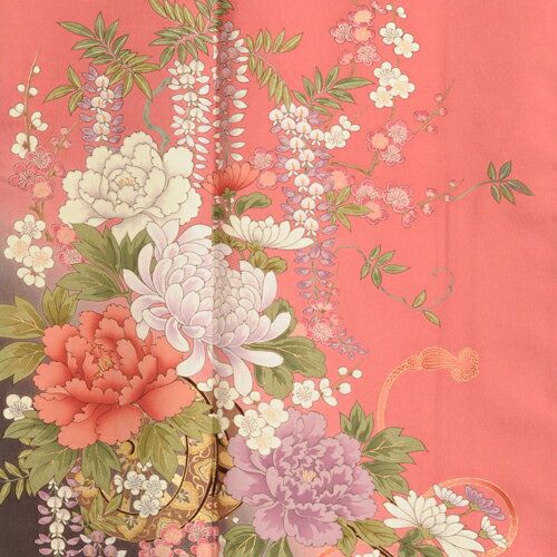 ◆ H30年10/6〜10/20(ご予約済み)【振袖レンタル サモンピンク花車】 結婚式、卒業式(2月〜11月)などに ご利用ください。