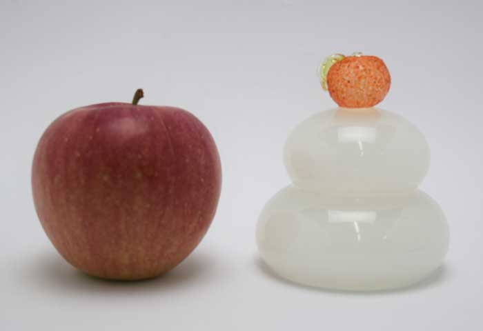 メーカー希望小売価格はメーカーカタログに基づいて掲載しています 博多びーどろ粋工房 ガラスの鏡餅(小) 【寸法】最大φ8.5cm×H10cm (敷板W15cm×D10cm)※敷板・和紙(金銀ちらし、紅白)2枚重ね・水引付き 一つ一つ型を使わずに制作するガラスの鏡餅。