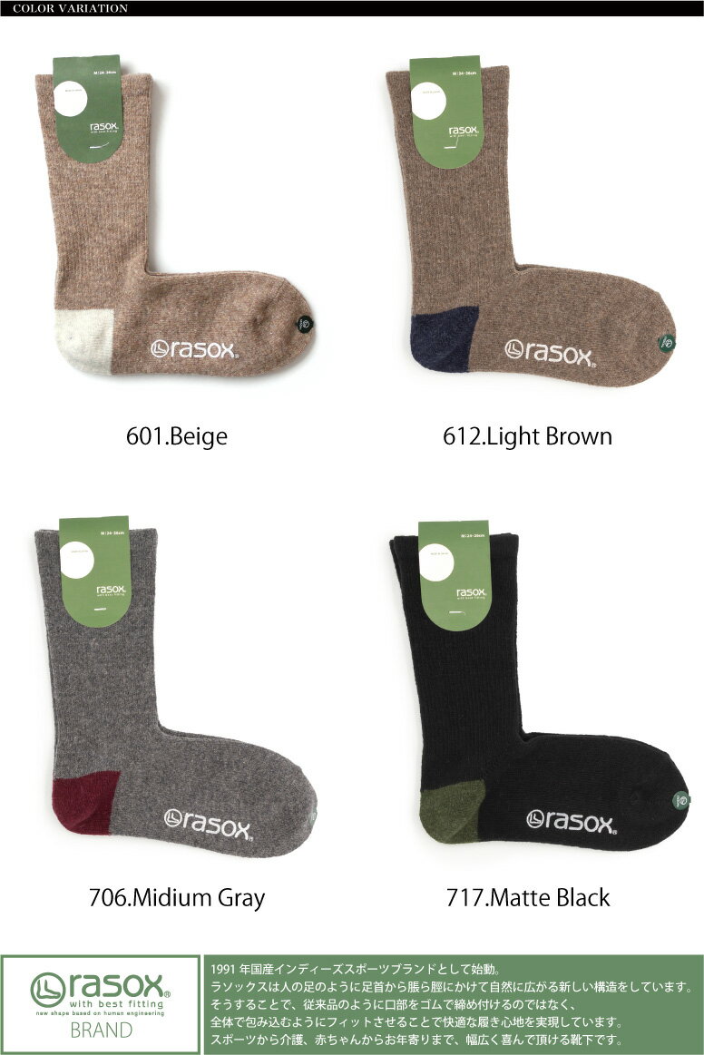 ★期間限定・ポイント15倍商品★【送料無料】rasox(ラソックス) ベーシック・ウール ソックス L字型 靴下 くつ下 メンズ レディース 日本製 ベーシックシリーズ【コンビニ受取対応商品】