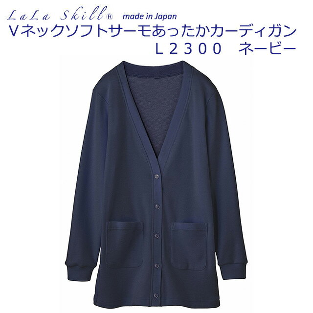 ララスキル Vネックソフトサーモあったかカーディガン L2300 ネイビー(500)【LaLa Skill・ナースカーディガン・ナース用カーディガン・院内用カーディガン・あったかカーディガン】